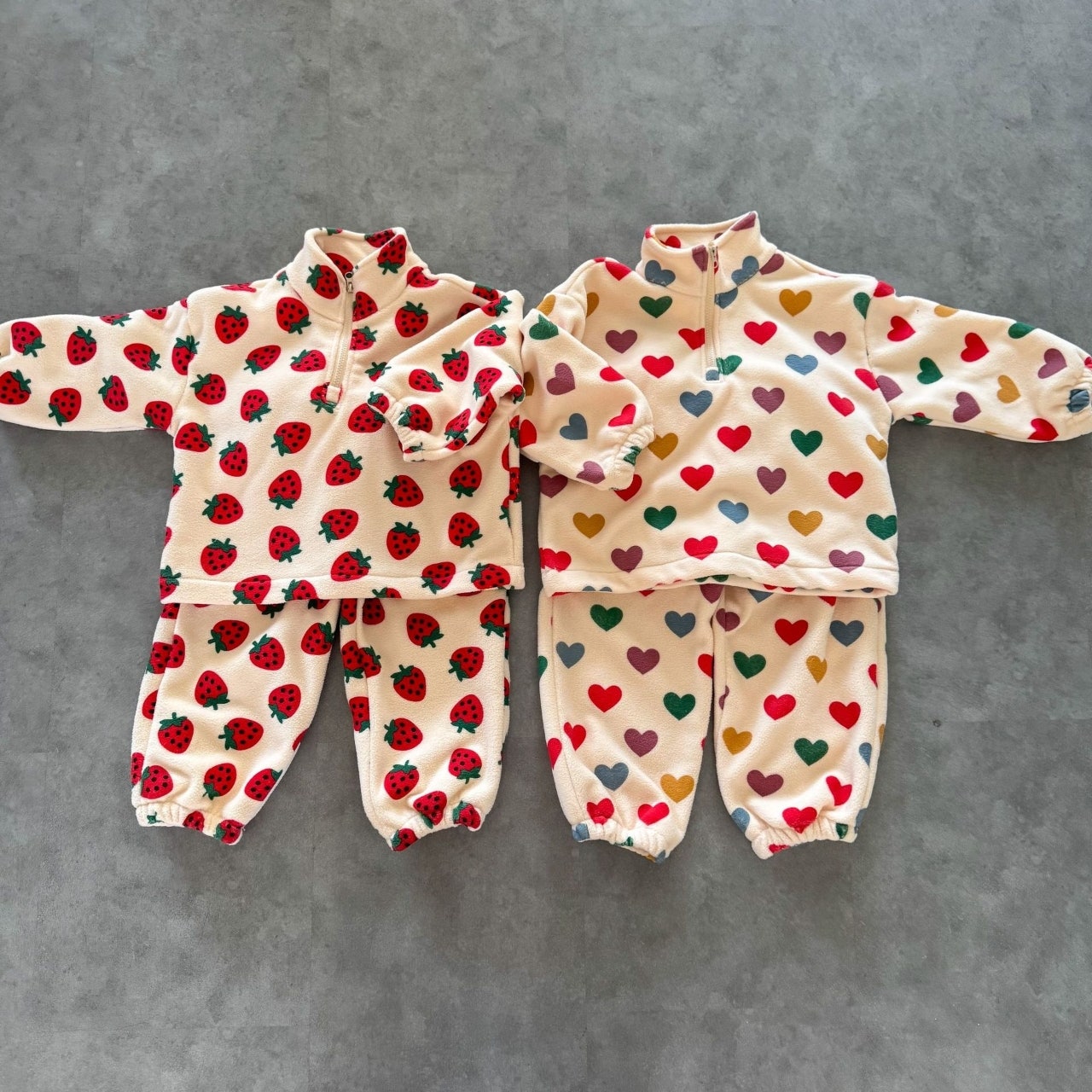 - [수입]딸기하트후리스반집업셋