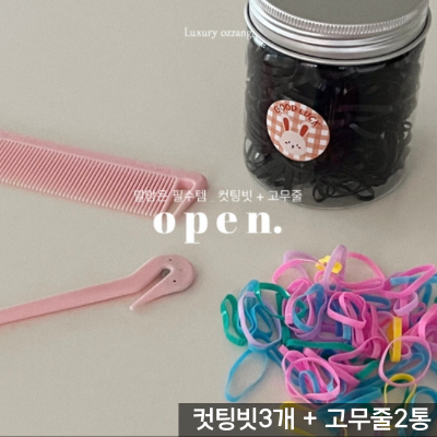구성 : 컷팅빗3개 +고무줄(컬러+블랙)