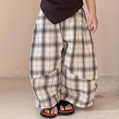 비다이어리.쇼티체크와이드팬츠
