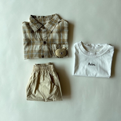 앙뜨제이.브라운체크곰돌이3종상하세트